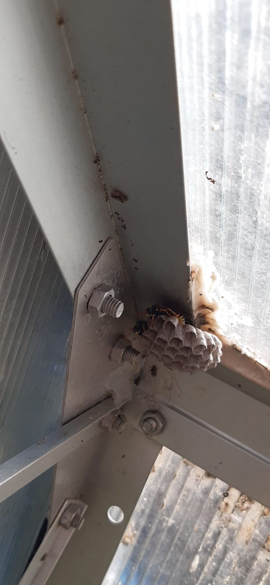 Da die Tiere aber schon im Dach waren wurde nach einer Beratung bei einer Begehung vor Ort entschieden eine Platte von unten gegen die Decke zu stützen um einen Durchbruch zu verhindern. Im darauf folgenden Frühjahr wurde das Nest entfernt.