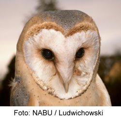 Der wissenschaftliche Name der Schleiereule lautet Tyto Alba. Der Name "Tyto" kommt aus dem Griechischen und bezeichnet eine ganze Gruppe von Eulen, "Alba" bedeutet: weiß. Vorkommen / VerbreitungSie besiedelt große Teile der ganzen Welt und zählt zu den am weitest verbreiteten Eulen- und Vogelarten überhaupt. In Europa kommt sie nordwärts bis Dänemark und bis Nordengland vor. Sie meidet Gebiete mit Kälte und häufigem Schneefall. KennzeichenDie Schleiereule ist etwa 35 cm groß. Sie ist eine sehr helle, schlanke, langbeinige Eule mit oberseits goldbraunem oder grauem Gefieder mit kleinen Spitzenflecken. Die Unterseite ist heller, und kann von weiß, gelbweiß bis zu hellem Braun variieren. Männchen und Weibchen sind kaum zu unterscheiden, ihr Gewicht beträgt etwa gut 300 g. Charakteristisch für die Schleiereule sind die dunklen, schwarzen Augen und der namensgebende, ausgeprägte herzförmige Gesichtsschleier. Der Schnabel ist blassgelb, die Krallen hornfarben. Sie ist ein nachtaktiver Standvogel, der elegant und mit langen Flügeln leicht schwankend fliegt. Die Schleiereule jagt nur in der Dunkelheit, allerdings wird die Jagd während der Brutzeit auch auf den hellen Tag ausgedehnt. Biotop / LebensraumAls typischer Kulturfolger mit enger Nachbarschaft zum Menschen besiedelt sie bei uns hauptsächlich die Agrarlandschaft mit dörflicher Umgebung. Bei reichlichem Beuteangebot scheint ein Paar mit einer Jagdfläche von etwa 50 ha auszukommen. Nahrung