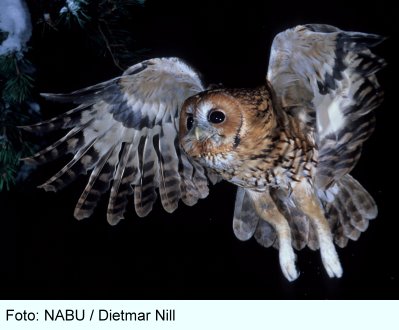 ZugDer Waldkauz ist ein Standvogel. Die Paare bleiben ganzjährig im Revier zusammen, trennen sich zwar nach der Brutzeit im Sommer, kommen aber bei der "Herbstbalz" und Nistplatzsuche wieder zusammen. Vorkommen / Verbreitung / Bestand / SiedlungsdichteDer Waldkauz ist in ganz Deutschland verbreitet, laut ADEBAR gibt es in Deutschland 43.000-75.000 Brutpaare. Es gibt ihn ebenso auch in vielen Teilen Europas, sogar weit im Osten. Gefährdung und SchutzDer Bestand scheint langfristig stabil zu sein. Es gibt aber eine Gefährdung durch das oft unnötige Fällen von alten Höhlenbäumen und der Schaffung eintöniger Wälder und ausgeräumten Agrarlandschaften - wegen daraus folgendem Nahrungsmangel. Durch den schwindenden Lebensraum gibt es häufige Verkehrsopfer. Natürliche Feinde für den Waldkauz sind Uhu und Habicht. Helfen können wir dem Waldkauz durch den Erhalt alter Höhlenbäume und auch mit dem Anbringen von künstlichen Nisthöhlen. |